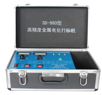 北京珊达激光SD-980电化学打标机产品特色:适于在多种金属材料(如不锈钢,碳钢,硬质高速合金钢,铝合金,表面镀铬,镀锌,镀镍)直接标注字符或印制不锈钢标牌。