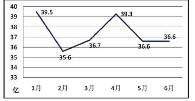 市场: 1 - 4 月爆发时“井喷式”市场需求后5、6月份市场需求开始有所放缓。我协会对行业内230家重点联系企业的统计数据显示:1-6月的新增订单数据显示,只有1月和4月份的当月新增订单超过39亿元,5月和6月份又回落至3月份水平,仅比有近一半假期的2月份高出1亿元。从重点联系企业的统计数据看,某些重型机床的订单从一季度就已经开始下滑。可以预见在下半年市场需求增幅趋缓。上半年各月新增订单情况见图3。