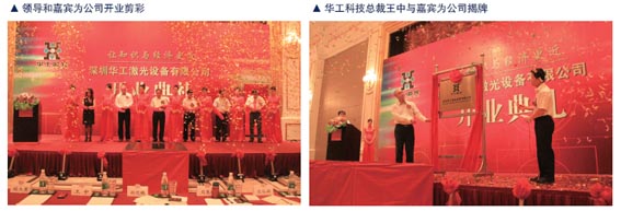 2011年9月23日,华工激光在深圳举行盛大庆典,庆祝深圳华工激光设备有限公司开业,标志着华工激光在华南区发展史上新的里程碑,昭示着华南市场在华工激光发展进程中日益增长的重要性。