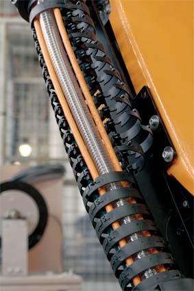 图2 即使装配在机器人上,T R L F.100也可以随时随地快速打开。更换及重新装填电缆都可以非常快速,停工时间大大降低