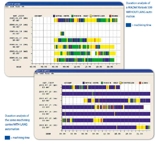 德国的生产制造商则是从另外一个角度来解决多品种小批量订单:他们会把有限的资金投入到增加机床附件上,通过给每台机床增加这些辅助生产的工具来提高更换夹具和更换工件的精度和效率,减少辅助时间,最大程度的发挥每台机床的潜力。在机床附件上投入的资金会远小于增加一台机床,而取得的效益却不逊于甚至超过增加一台机床。制造商在达到同样生产率的情况下,不需要为了增加设备而增加工厂面积,不需要增加新员工,不需要承担因为经济下行而产生的风险,产品质量也始终如一。下图为某公司运用德国LANG牌快换工装的前后改观。
