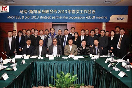 斯凯孚(SKF)亚洲区总裁阮凯旭(前排左三)出席马钢-斯凯孚战略合作2013年首次工作会议