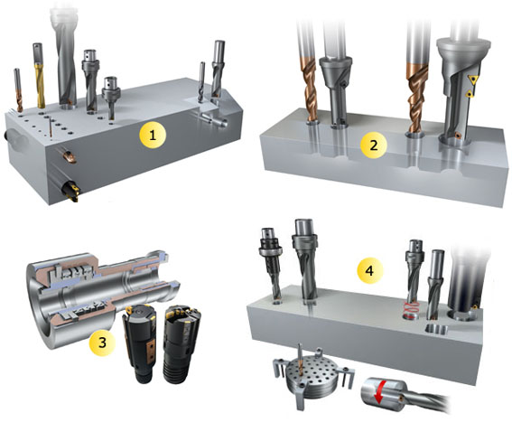 图1—普通钻削,图2—阶梯与倒角钻削,图3—深孔加工,图4—其它方法