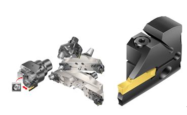 CoroBore® 825 SL端面切槽头可进行预设置的径向精调,其直径范围为47- 1275 mm。对于较小直径范围47-150 mm,可提供C6和C8接柄;对于>150 mm的直径,则可使用与带CoroBore XL相匹配的专用端面切槽头。