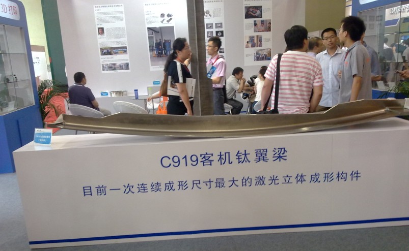 2013 年6月26日至28日,北京国际工业智能及自动化展览会在北京展览馆举行,西安铂力特激光成型公司展出了C919客机钛翼梁,它是目前一次连续成型尺寸最大的激光立体成型构件。