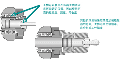1.2 距离主轴的前端轴承拥有最小的悬伸,这样就可以确保主轴本身的精度直接传递到工件上: