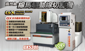 GX系列线性马达线切割机采用第六代自动穿丝系统,通过精准的张力控制技术,带来接近100%的穿丝可靠度;搭载自制线性马达,具备无摩擦、无动能转换损失、定位更为精准,高响应、无震动、无背隙补偿需求,机器精度长时间寿命的保证与免维护,并能在维持优异性能下,让精密线切割加工得以实现;智能型稳压电源,内建IVC回路能确保每次的放电加工过程中将能量电压来源的持续稳定性,拥有最高可靠度的切割能量以实现连续加工所需的严峻精度保证; GX系列搭载节能再生技术ESL,最新式的G6电控箱,内建全台湾独步的ESL回路,符合绿色环保科技理念;最新型W5F控制器,内建独家智能型控制器软体扩充功能强大;选配省电变频冷却器,可升级为省电变频式,冷却速度快,使水温度稳定,加工水槽温控准确度在±0.3℃,同时较一般通用冷却机省电45%,大幅度减少排放热量,也可降低空调耗电。