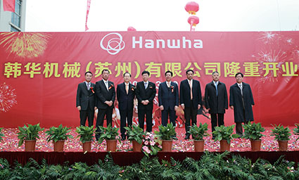 2014年3月20日下午,位于张家港经济技术开发区张杨公路北侧泗港段的韩华机械(苏州)有限公司迎来了隆重的开业典礼。 韩华集团中国总部琴春洙社长、韩华机械金渊喆董事长、韩华机械郑允根工会委员长、韩华机械(苏州)有限公司法人长朴德淳、张家港市委常委、张家港经济技术开发区党工委书记张伟先生等领导,以及众多的客户代表和新闻媒体出席了此次盛典,共同见证了这一重要的历史时刻。
