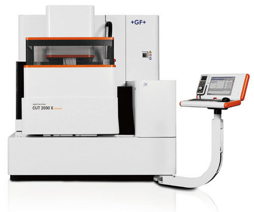 GF加工方案推出AgieCharmilles X 系列产品,消除了步距和定位误差,把高精度的线切割电火花成型机床推向了新的极致。在EMO现场展出的 CUT 2000X慢走丝线切割机床,其最佳的加工条件可满足微细应用的极致的需求——由X系列机床的高精度轴、短距测量环、所有轴上的双重测量系统、EDM加工区与热源的始终隔离,以及全防护加工区得以确保。