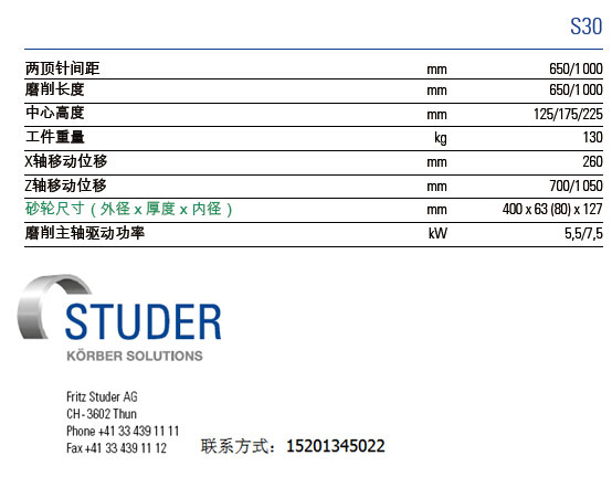 瑞士STUDER斯图特S30万能内外圆磨床技术参数: