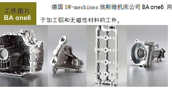 德国SW-mechines埃斯维机床公司BA one6在使用单主轴加工大型轻金属零件的 粗加工和精加工中, 可以 完美的补充您的多主轴生产线。联系方式:010-84047918. 德国SW-mechines埃斯维机床公司BA one6卧式加工中心可以完美呈现它的高精度加工。 从而可以享受整条由SW提供的加工中心线带来的优势:标准操作,项目责任和一站式服务。