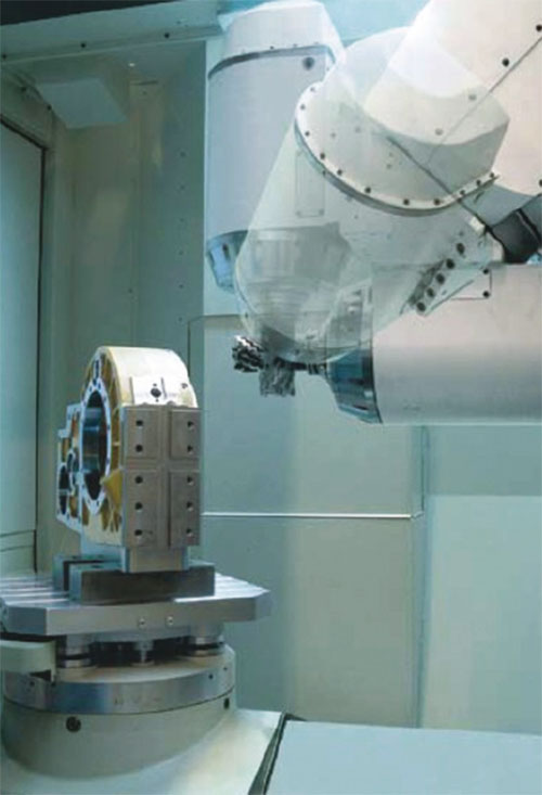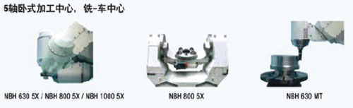 德国惠勒喜乐NBH系列5轴卧式加工中心应用在模具加工、航空航天业内的轮廓形状和复杂几何形状的加工中,一次装夹,完整加工优势十分显著。额外配有强大的铣削-车削功能。