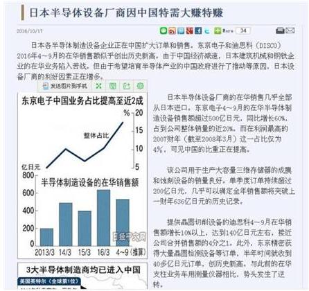 中国目前投资大力半导体,结果让日本半导体设备厂商赚了个盆满钵满。