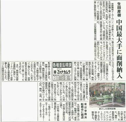 中国高精尖科研设备铜材主要提供商,国家重点扶持机构中铝洛铜向日本生田产机购买一整条伸铜双面铣面切削生产线;世界几乎所有汽车品牌上的铜材的加工过程都要利用生田产机的设备完成
