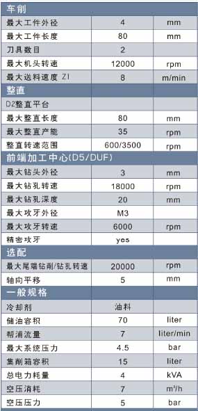 瑞士ESCO艾思科数控走心机D5技术参数: