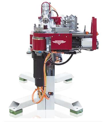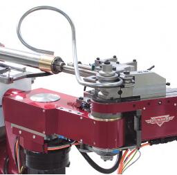 赫伯弯管机另一个特点是数控第四轴, 当欲将薄壁管弯较大角度时, 压紧模具可根据编程, 自动推管子以减少外壁减薄; 压紧模具的相对助推速度将根据弯管速度和弯管模具的半径不同而自动修正。