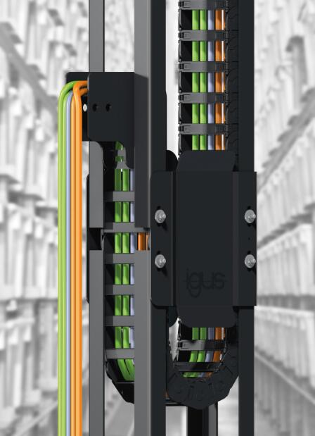 对于室内物流中的高动态应用来说,7 米/秒的速度不再鲜见。为了对垂直运动的拖链进行安全的位置固定,igus 开发了“guidelitevertical”导槽系统,简称 GLV。它具有重量轻和安装方便的特点,可以实现最大的运动动力学特性; 开放式设计还可以减少共振,降低噪音。