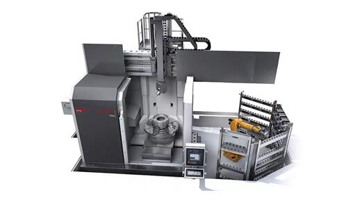 TVU 立式车床的优势在于全铸铁结构、高静态和动态轴稳定性、高精度以及长期可靠性。为确保更高的灵活性,机床可配备数个托盘交换系统以及适用性铣头。通过选装装置 Y 轴工作台进给装置,可单次夹紧对复杂组件进行车削、铣削和研磨。
