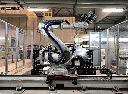 整个工位占地8m×6m,在6m长导轨上安装有ABB机器人,并配备了2块矩阵孔平板,能完全覆盖从侧围到车门的30种以上自制冲压零件的现场测量。整个工位距离压机线最近距离仅9m,并且通过了压机线高速工作时的测量精度及重复性验证。