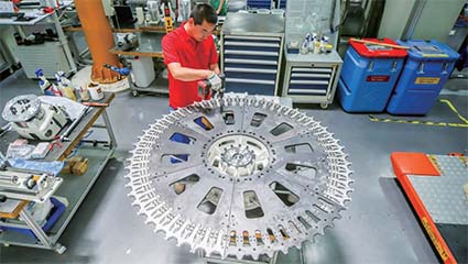 在大连生产基地,第一步是逐渐扩大围绕装配线的产品范围和生产范围,并在中期实现扩展至电动汽车领域。为此,需要一整片大规模场地,因为装配线的占地面积约为切削线的 2.5倍。此外,大连生产基地计划提升万能机床的产能,以便明显改进交付时间和可用性。而另一个焦点则是装配技术领域。目前,在设计部门中还组建了一个“装配技术”小组。部分装配人员已被派往格劳博美国布拉夫顿工厂和德国明德海姆工厂接受新技术的培训学习,为未来在中国执行新项目储备人才。