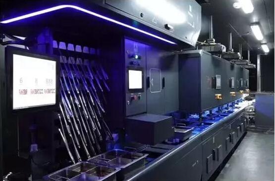 在海底捞首家智慧餐厅中,除了自动配锅机以外,和利时还为海底捞提供了一条全自动无人清洗线,这在海底捞全球现有的300多家门店中也属首次尝试。全自动清洗线实现了从脏锅入口开始,到自动清洗、检测、锅型识别、分类入库、紫外线消毒、按订单出库等全流程自动化,无需人为干预。全自动无人清洗线大大提高了洗锅出锅效率,减少了后厨人员,保证了锅具卫生满足食品安全要求。