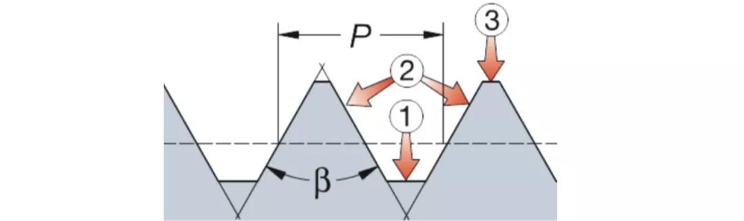 ↑↑①牙底 ②牙侧 ③牙顶↑↑