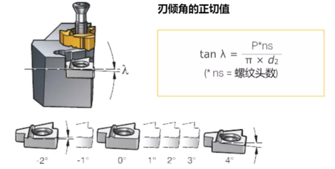 - 刃倾角为γ。最常见的刃倾角为1°,对应刀柄中的标准刀垫。