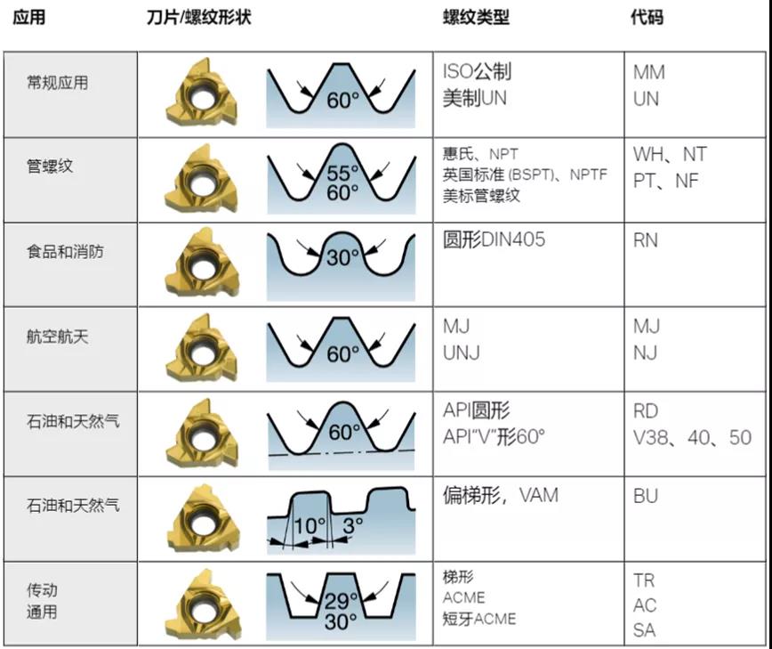 - 为了确保生产率和刀具寿命,首选多牙型刀片,次要选择为单刃全牙型刀片,生产率最低,刀具寿命最短的选择是V牙型刀片。