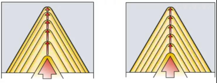 ↑↑切深逐层递减(左)、切深恒定(右)↑↑