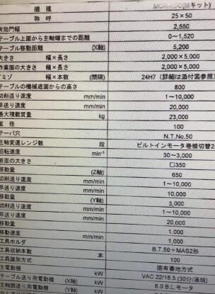 品牌:日本大隈 出厂时间:2005年 参数如下: X轴行程:5200mm Y轴行程:3000mm Z轴行程:650mm 工作台尺寸:2000x5000mm 工作台最大承重:23000kg 主轴转速范围:30-4000rpm 门宽:2550mm 轴承内径:100mm 刀库容量:72 主电机功率:56/22kw 联系:135 2207 9385