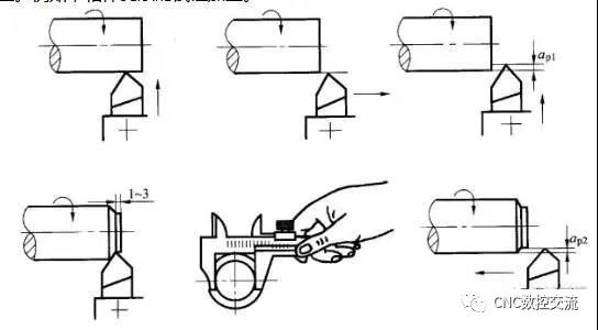 即先试切出很小部分加工表面,测量试切所得的尺寸,按照加工要求适当调刀具切削刃相对工件的位置,再试切,再测量,如此经过两三次试切和测量,当被加工尺寸达到要求后,再切削整个待加工表面。