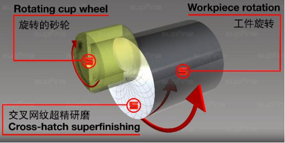 该磨料可以和工件反方向进行振荡或旋转加工以形成交叉网纹。