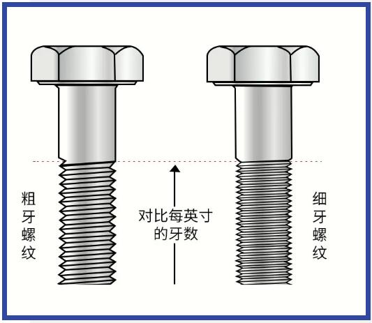 简单地说,在同一公称直径下,每英寸所含的螺距(牙数)不同。螺距大的是粗牙螺纹,而螺距小的是细牙螺纹。