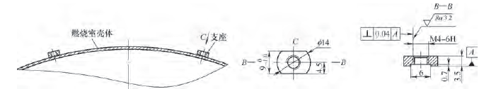 3)燃烧室壳体热处理前喷砂工序中需对支座螺纹进行保护,改变以前用M4螺钉保护的工艺方法,重新设计专用保护螺钉,精度为M4-6f,并且将螺纹旋入长度控制在1圈,避免多次旋合磨损。