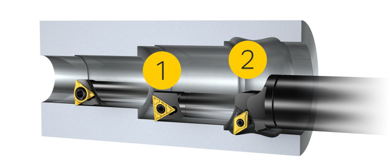 内孔加工的一般规则是:使刀具悬伸最小并选择尽可能大的刀具尺寸,以便获得最高的加工精度及稳定性。