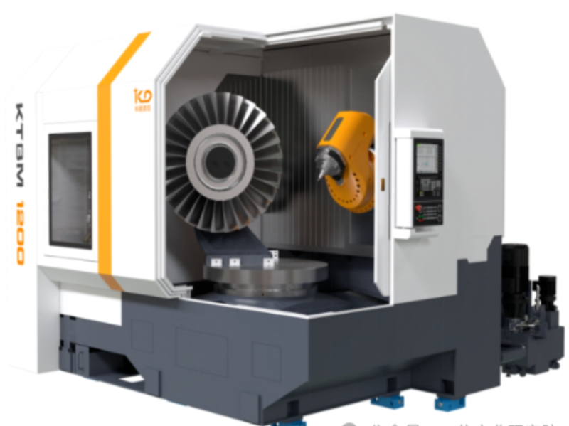 科德KTBM1200六轴五联动叶盘加工中心主要应用航空发动机核心零部件叶轮/叶盘类产品加工。可实现复杂零件的五轴铣削、镗孔、钻孔、等多工序的加工。机床速度高、扭矩大,可以大幅缩短航空发动机核心零部件的生产加工周期,实现优质、高效制造。