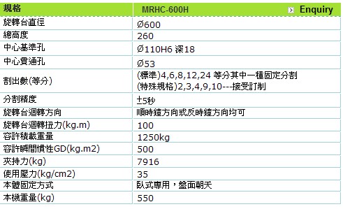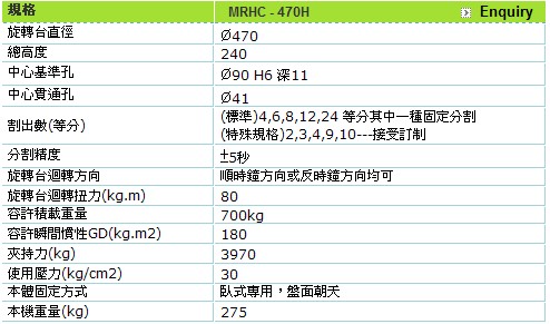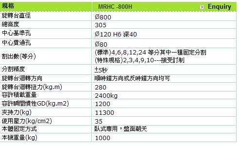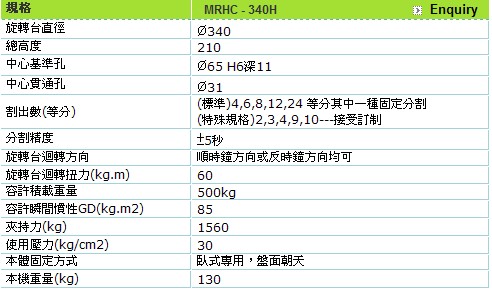 油壓精密分度盤 / MRHC-340H / 470H / 600H / 800H 油壓精密分度盤。 可4,8,12,24等分分割。 可正轉、反轉 分割精度5秒。 油壓式剎車系統。 獨特三片式離合盤
