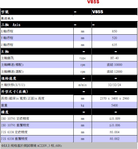 为您提供 高峰机械工业(昆山)有限公司 的V85S數控銑床产品,及其参数。