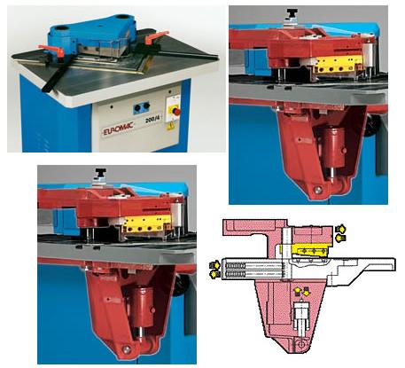 自动刀片间隙调节 (欧洲专利号 1.214.004),在对不同材质和厚度的板材剪切(从 1至6.5 mm)时不用人工调节上下刀间隙。从而提高生产效率。