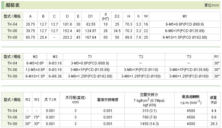 三爪超精密气压夹头TK系列