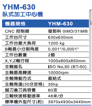 功能概述: 标准主轴转速:10000 rpm X/Y/Z 轴行程:1000/800/850 mm X/Y/Z 轴位移:48/48/48 m/min 工作台最大荷重:1200 kg 标准主轴锥孔:ISO No.50