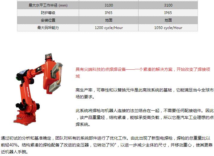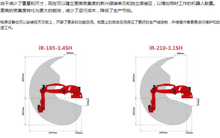 高负载系列关节式机器人由于减少了重量和尺寸,现在可以建立更高密集度的新兴焊接单元和独立焊接区,以增加同时工作的机器人数量.更高的密集度转化为更大的能效,减少了运行成本,降低了生产节拍.