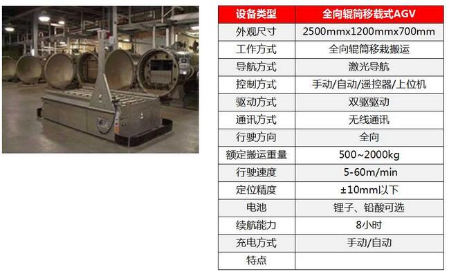 全向辊筒移载式AGV适用于客户现场栈板、料箱等货物的驳运。 主要适用于流水线工装板的回流、产成品的入库的操作。