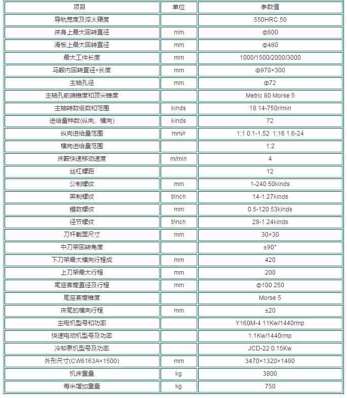 3.车床结构刚度与传动刚度均较高,精度稳定,并能进行强力切削。